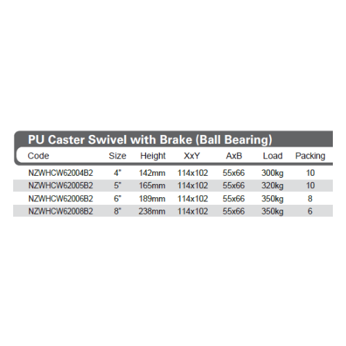 NIETZ PU Caster Swivel with Brake (Ball Bearing)