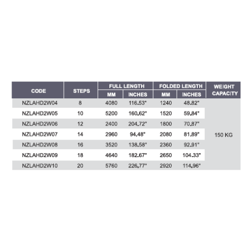 - Foldable aluminium ladder available in many sizes from 8 to 20 steps